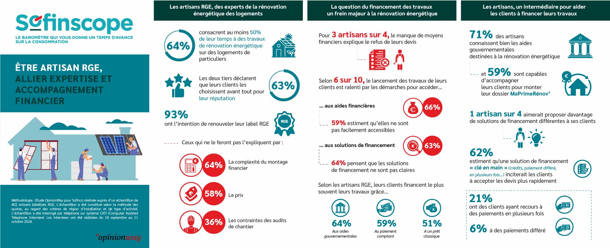 L’étude « Être artisan RGE, comment accompagner ses clients après la refonte de MaPrimeRénov’ ? » réalisée pour Sofinco, est une étude destinée à comprendre et analyser les enjeux financiers auxquels font face les artisans lorsqu’ils sont sollicités pour des travaux de rénovation énergétique.